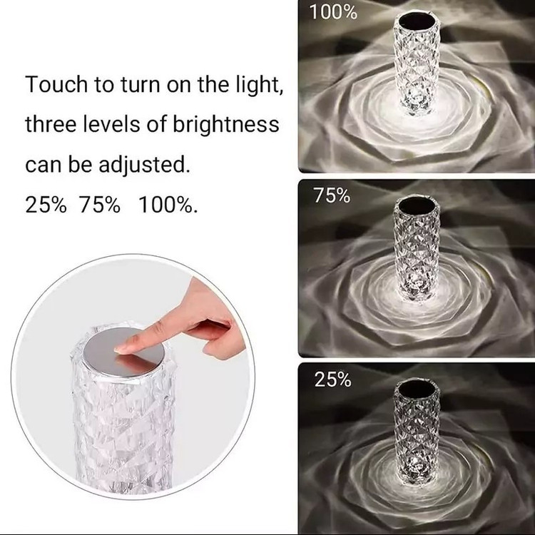 آباژور کریستالی لمسی طرح گل رز