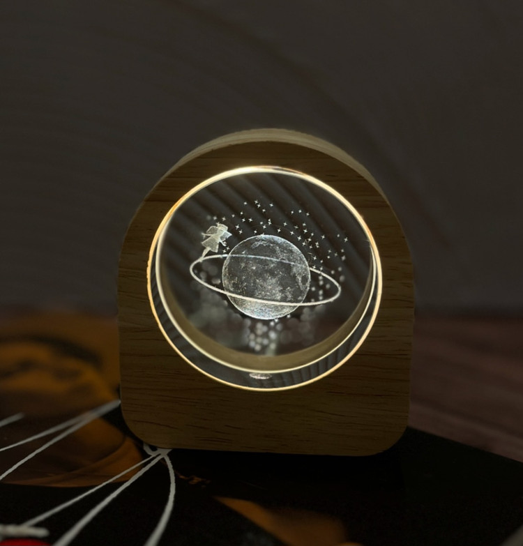 چراغ خواب کریستالی با قاب چوبی طرح ماهدخت (۶ سانتی)